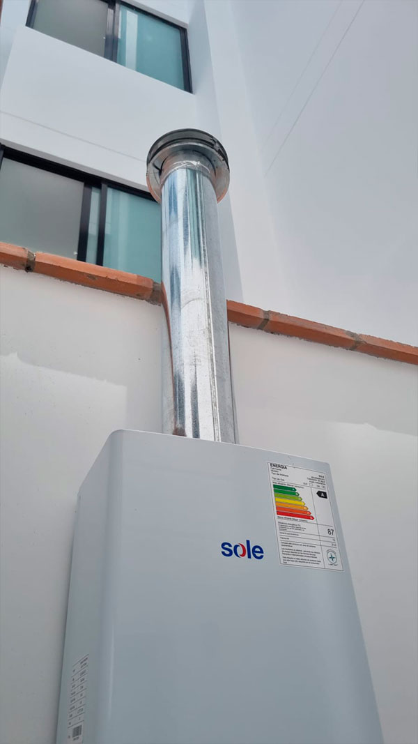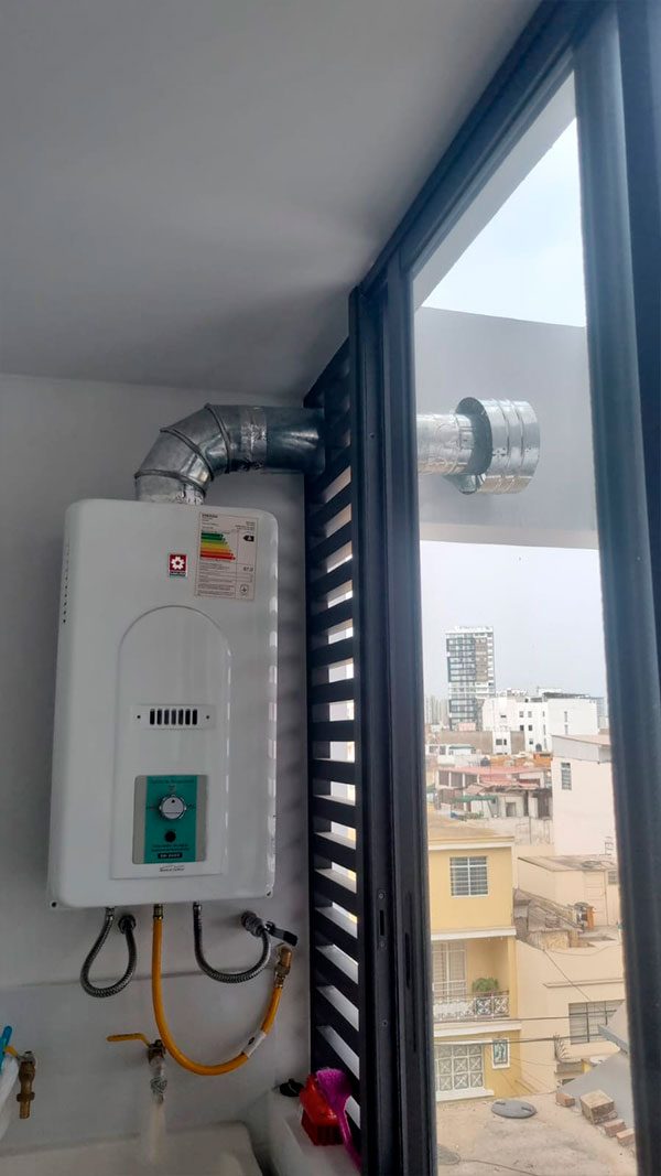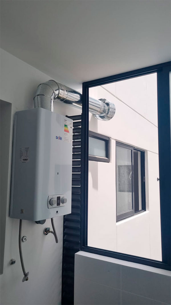 Nuestro equipo verifica en obra el modelo de la terma y el punto de salida más conveniente (fachada, ducto vertical/shunt o azotea), define el trazado, instala y sella los componentes respetando distancias, ventilaciones y acabados del proyecto. Coordinamos todo para que la habilitación quede lista sin contratiempos, con una terminación prolija y segura para el usuario.