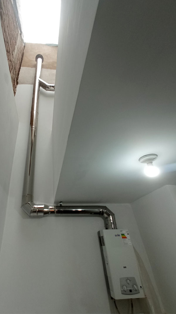 Instalamos chimeneas (ductos de evacuación) para termas el mismo día de la habilitación del gas natural. Podemos suministrar e instalar el kit completo o solo instalar la chimenea que el cliente ya compró. Este servicio es obligatorio para departamentos con termas tipo B, ya que la evacuación de gases debe dirigirse al exterior cumpliendo la normativa de seguridad.